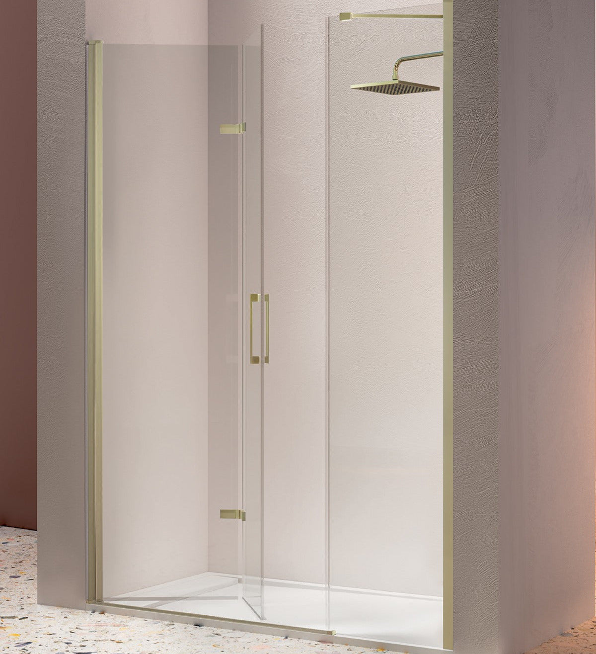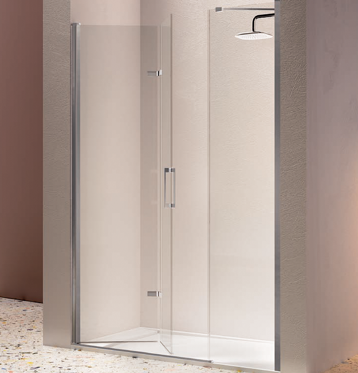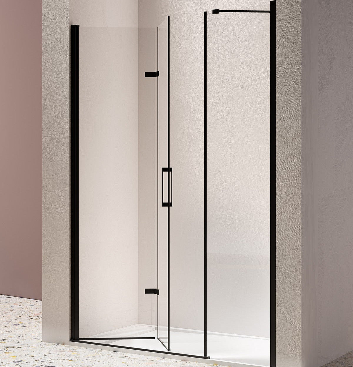 Diseño funcional y accesible: su composición frontal plegable ofrece una apertura amplia y cómoda, ideal para personas mayores o con movilidad reducida, facilitando el acceso al plato de ducha sin obstáculos.