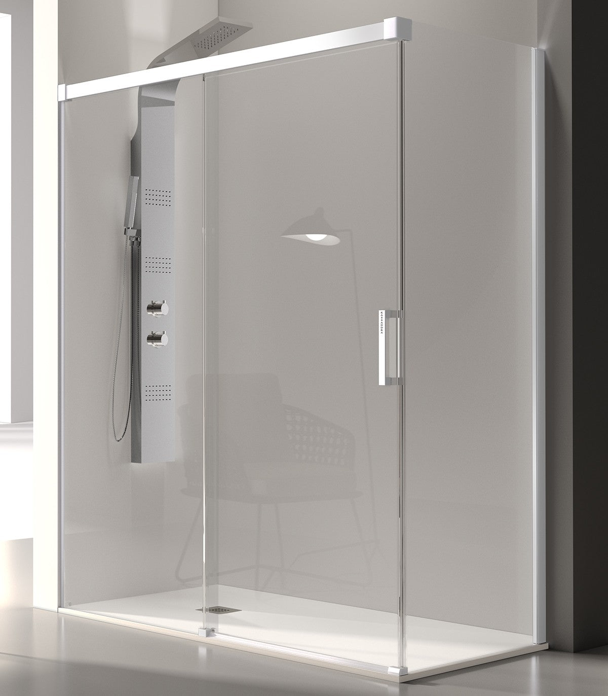 La opción perfecta para quienes buscan aprovechar al máximo el espacio sin renunciar a la elegancia. Su diseño frontal con 1 panel fijo y 1 puerta corredera (opción de lateral fijo GS103) ofrece una entrada cómoda incluso en baños pequeños o con obstáculos, garantizando movilidad, confort y estilo en cada ducha.