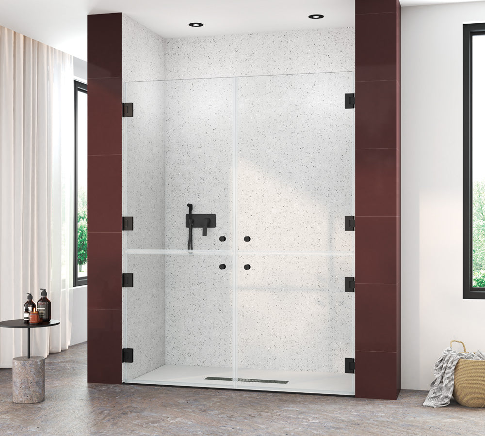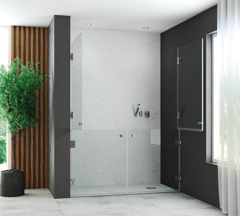 Maximiza el espacio y la accesibilidad con la mampara MUXIA MR de Becrisa, dos puertas partidas con bisagras. Este modelo ofrece una apertura completa del frente de ducha, facilitando el acceso para personas con movilidad reducida o necesidades especiales. Cada puerta cuenta con el diseño partido de 85 cm en su segmento inferior y cierre magnético.