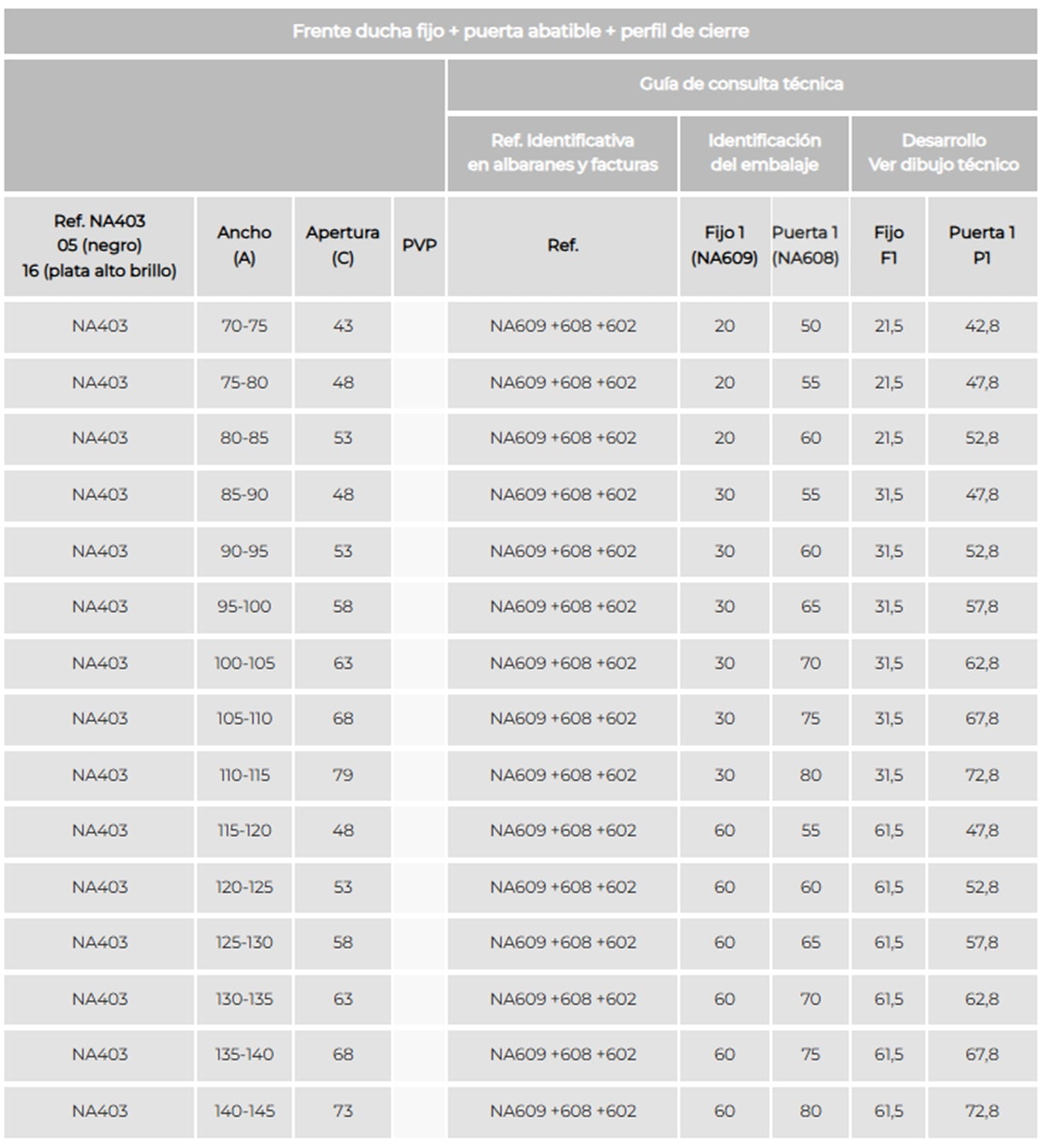 Mampara NARDI NA403 de Kassandra. Frente de Ducha Fijo + Puerta Abatible