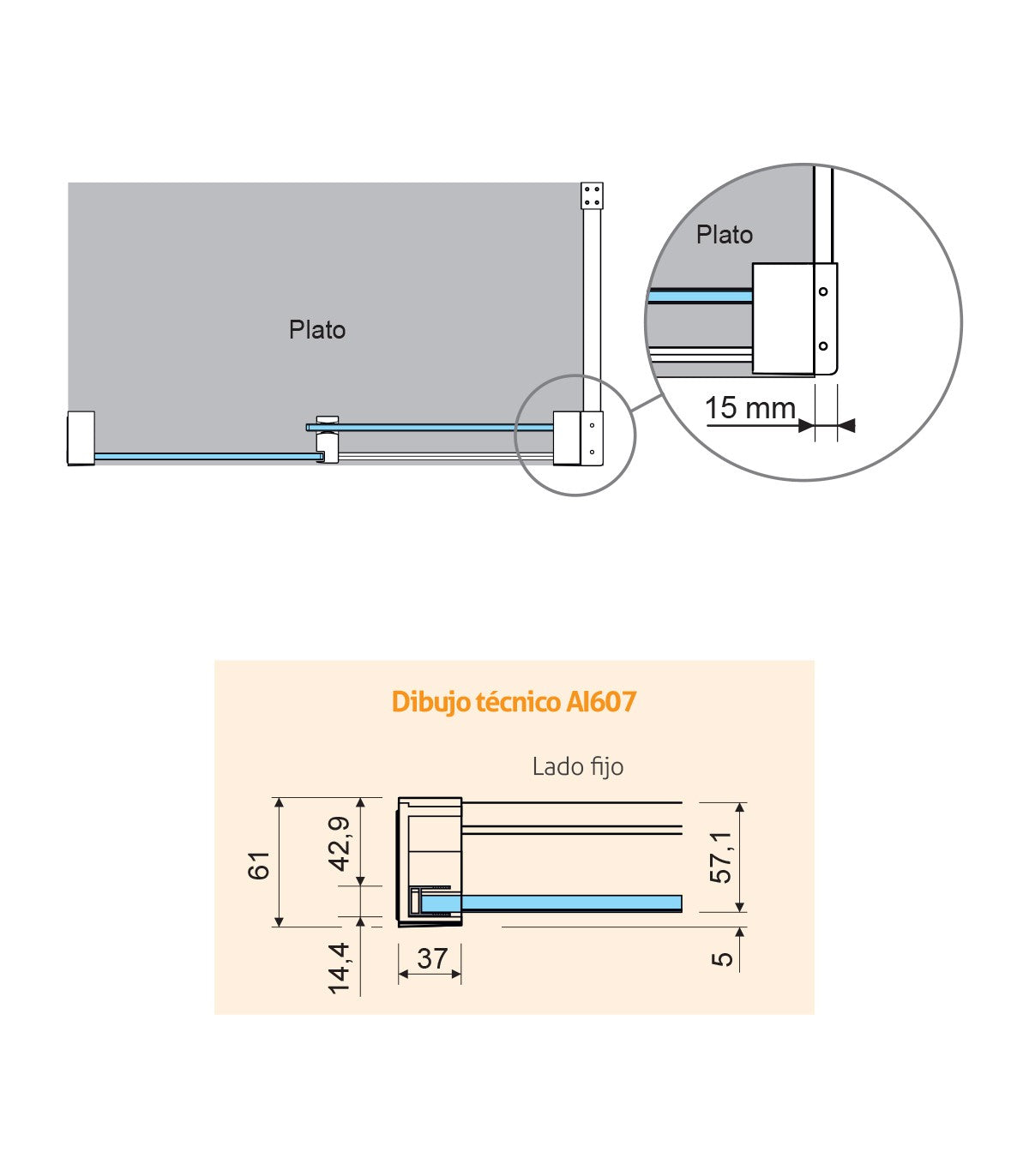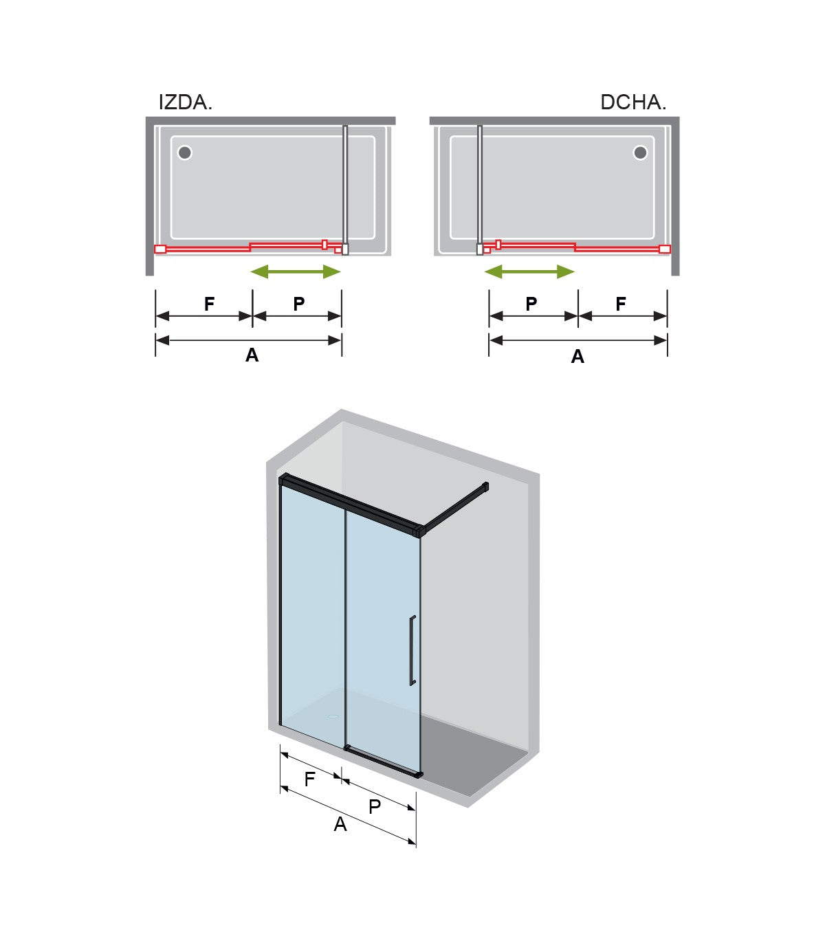 • Diseño frontal: 1 fijo + 1 corredera con tirante superior.