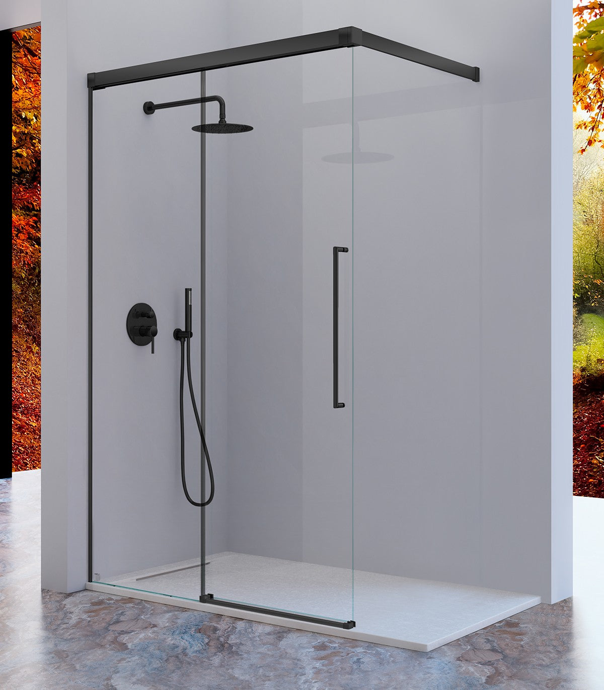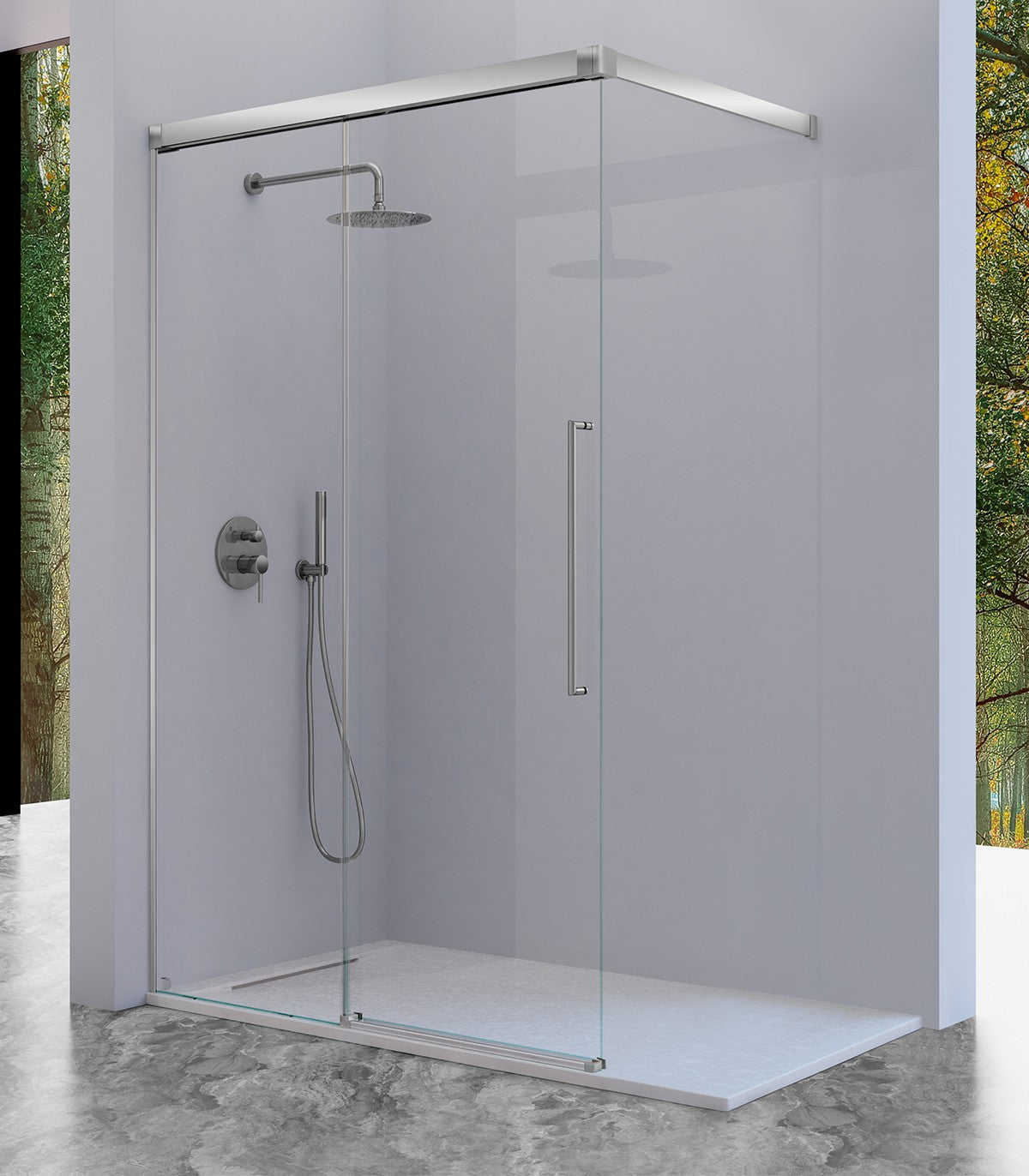 Mampara Walking PAVÍA AI108 de Kassandra. Frente Ducha Fijo + Puerta Corredera con Tirante