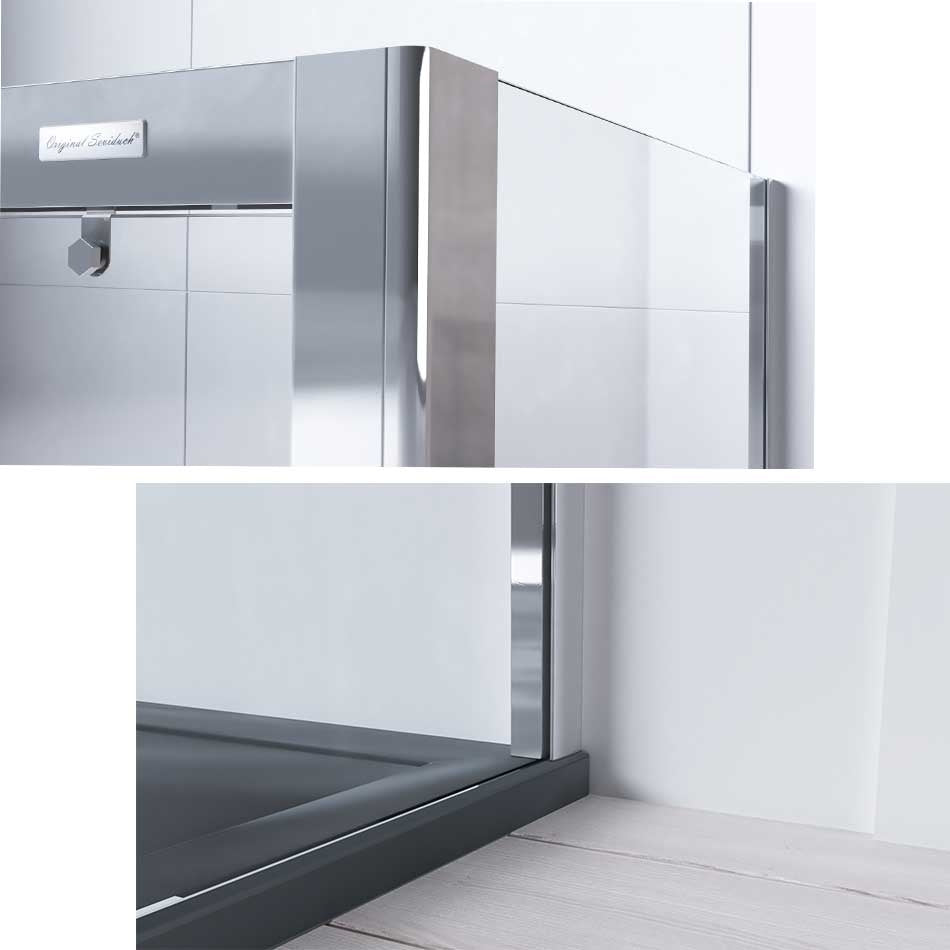 La mampara ZIRCON de Seviban destaca por su robusta estructura y diseño vanguardista, ofreciendo máxima estanqueidad sin sacrificar estilo. Su sistema de rodamientos Tandem y perfilería reforzada garantizan un funcionamiento suave y duradero, mientras que el tratamiento antical facilita la limpieza diaria.