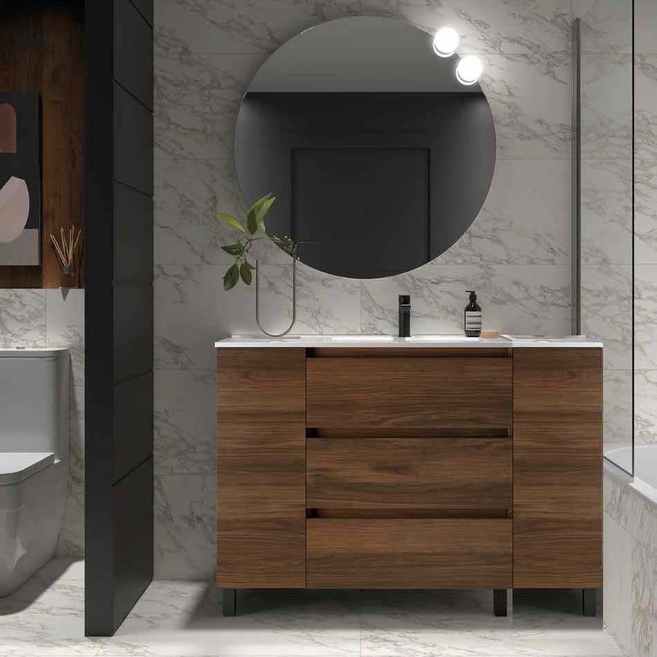 • Personalización total: Elige entre 6 acabados (lacados y madera) y combínalos con tiradores uñeros o metálicos (cromo, blanco, negro) para un baño único.