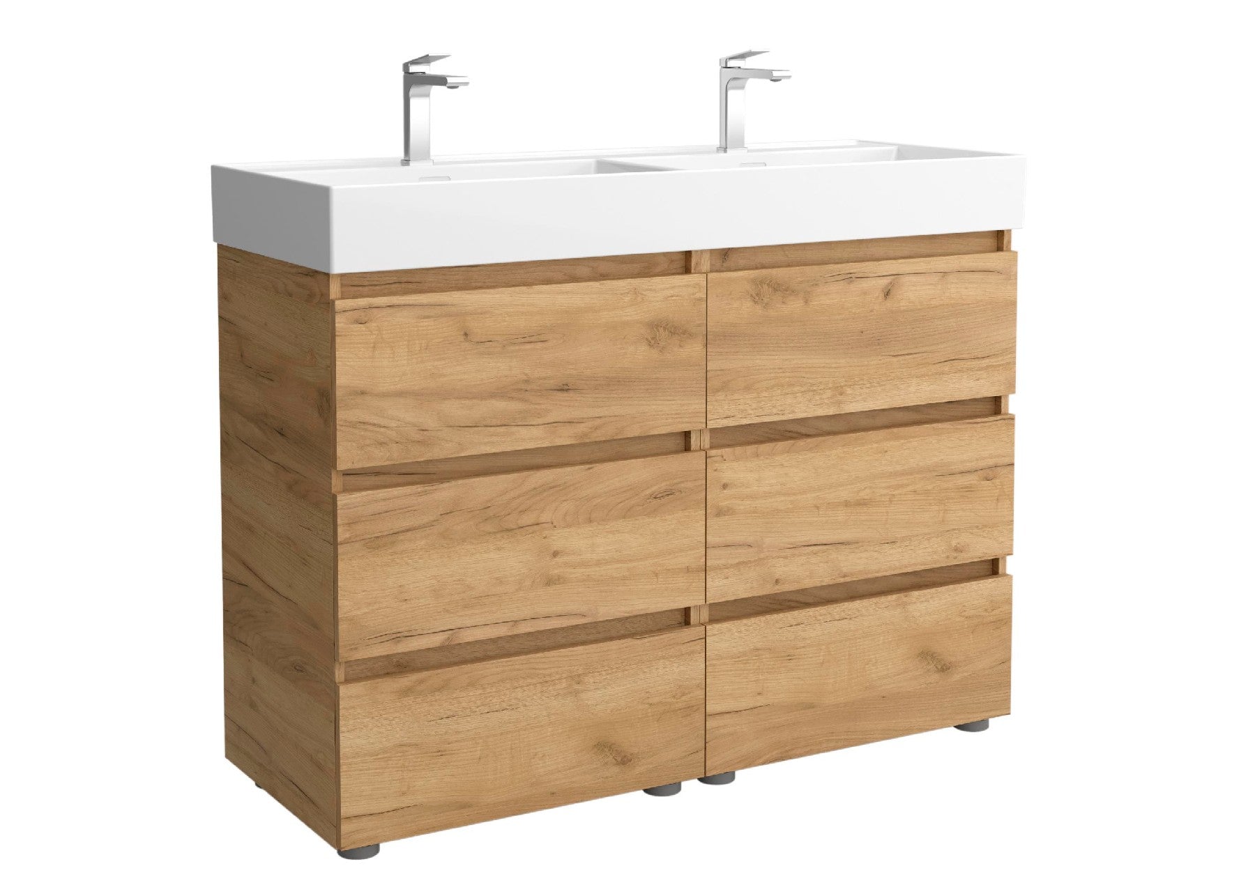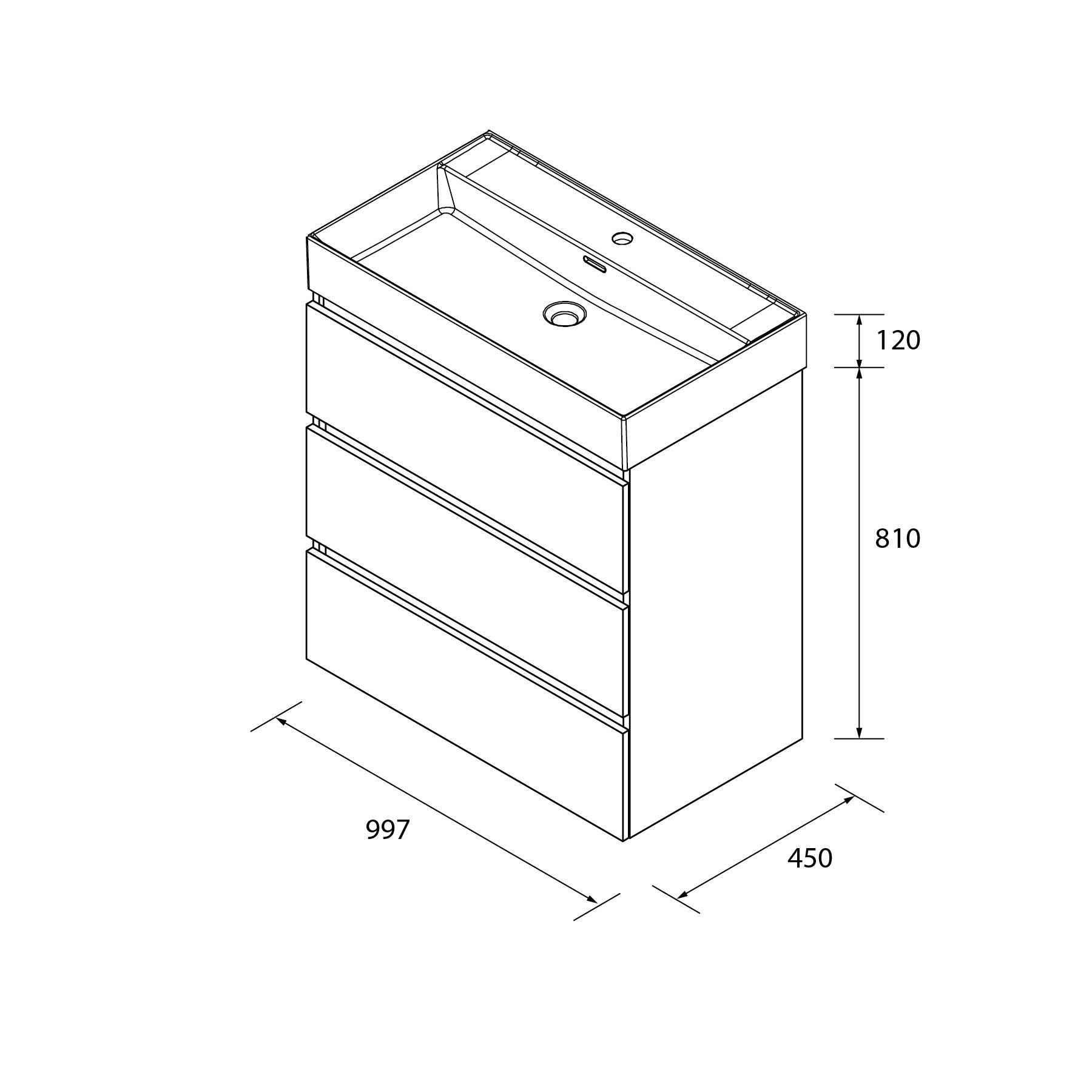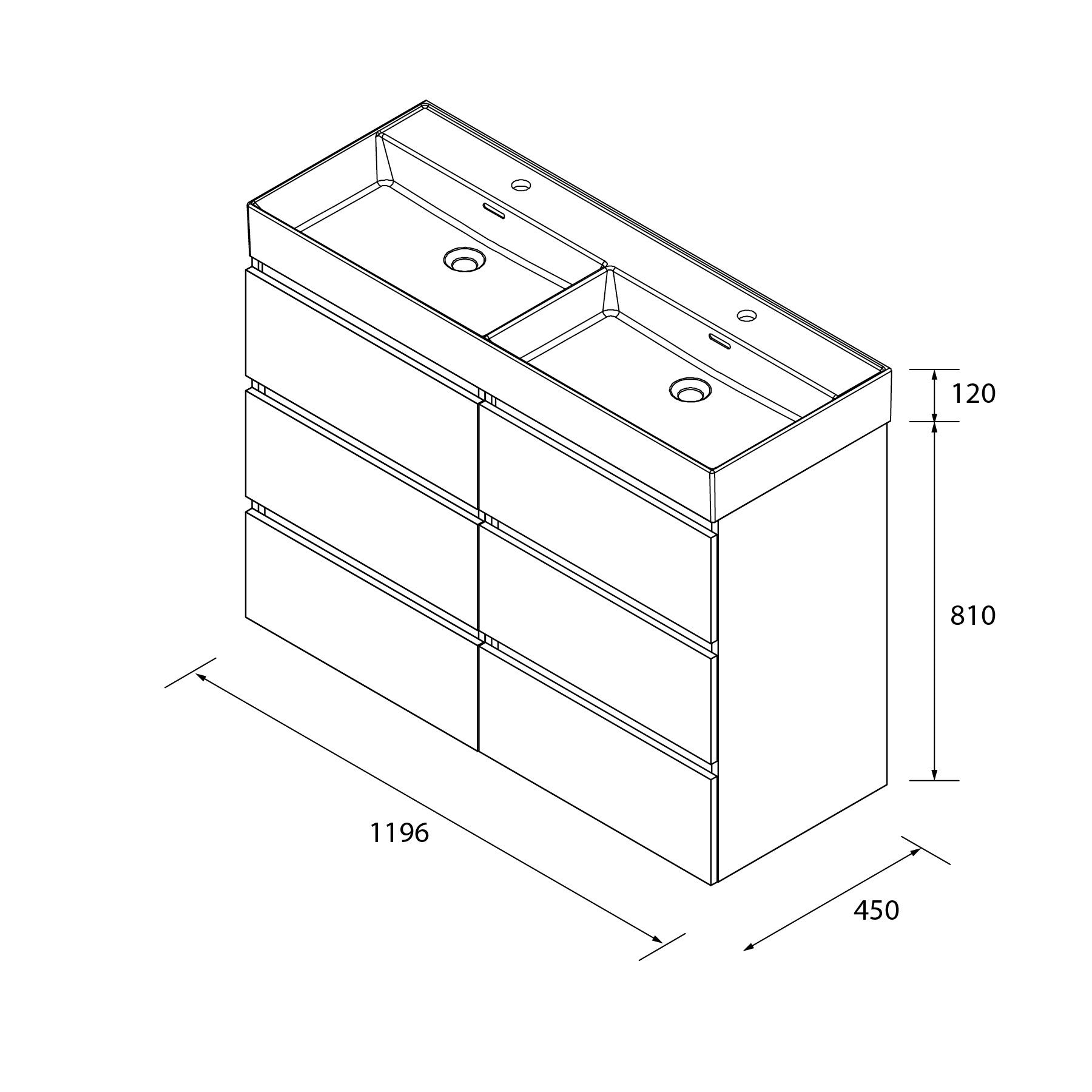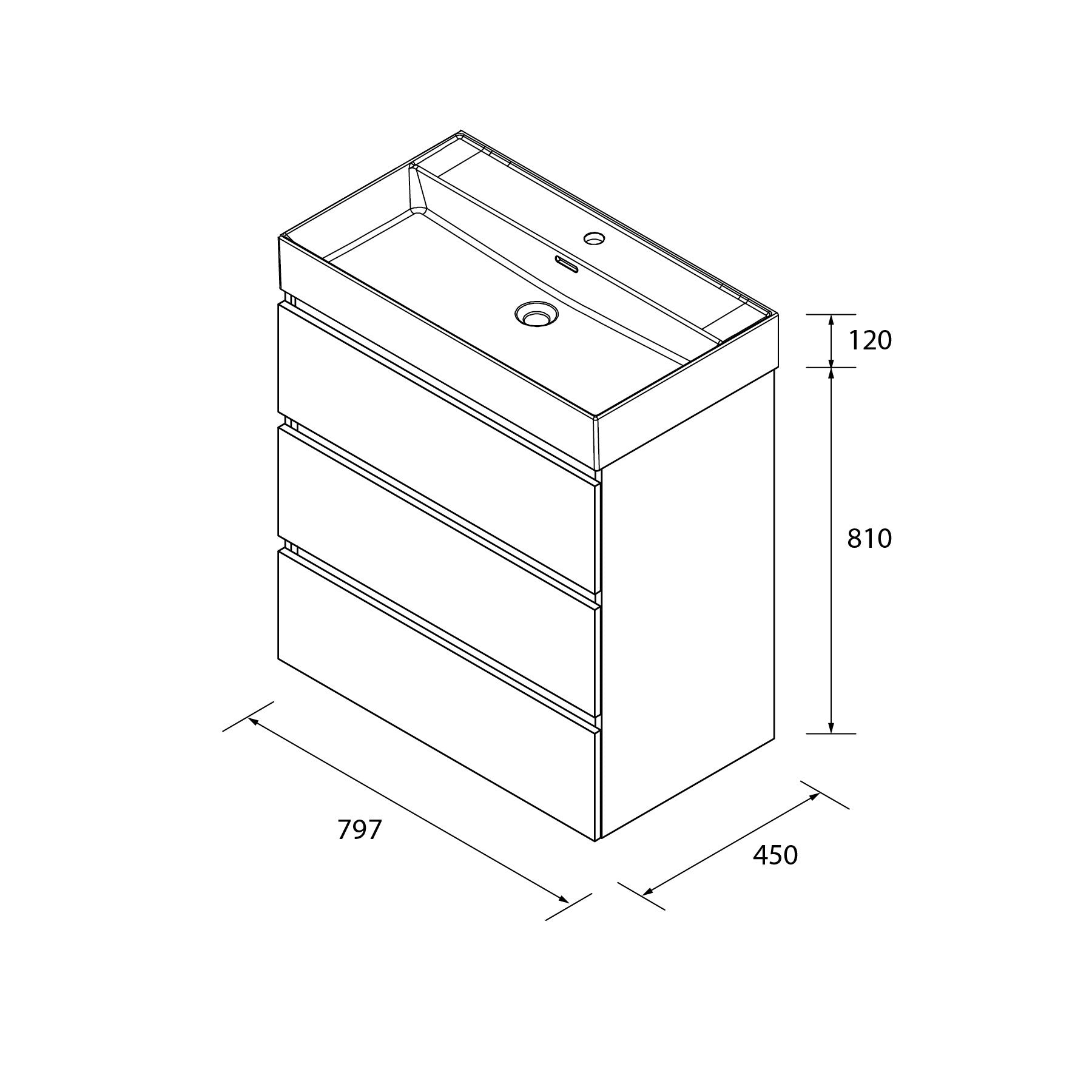 Disponible en anchos de 80, 100 y 120 cm, este conjunto incluye el lavabo Veneto de cerámica gruesa (12 cm de altura), resistente y con un acabado impecable que realza el estilo del conjunto.