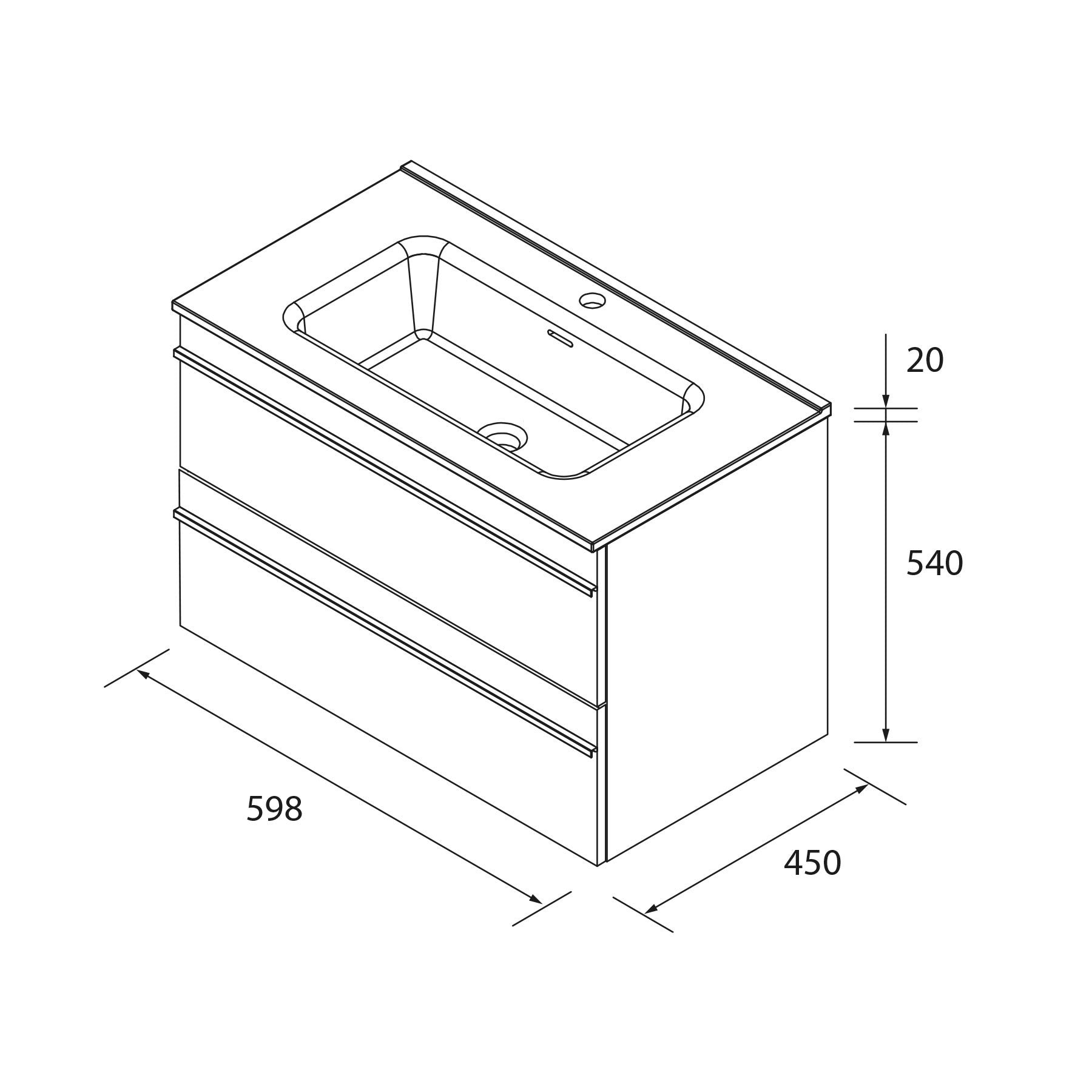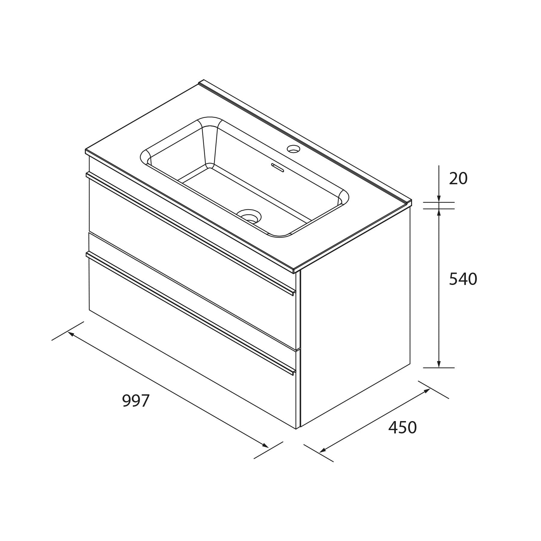 De 60, 80 y 100 cm con 2 cajones y lavabo cerámico integrado Conatanza de un seno.