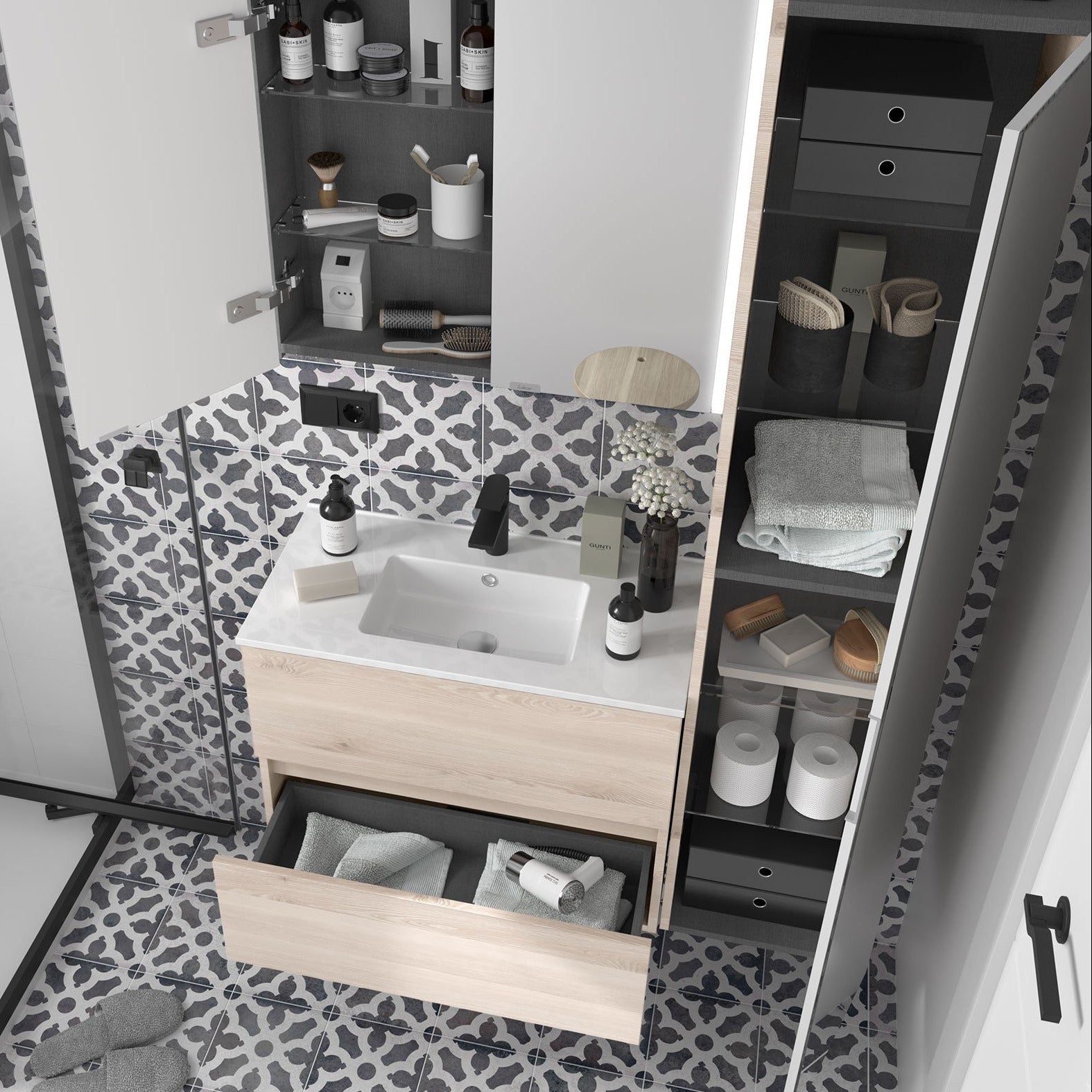 Transforma tu baño con el Pilar Auxiliar ALLIANCE 160 cm de Salgar, una columna de baño suspendida que combina almacenamiento inteligente y diseño elegante. Su puerta con espejo de cuerpo entero amplía visualmente el espacio y añade un toque moderno y sofisticado a tu estancia.