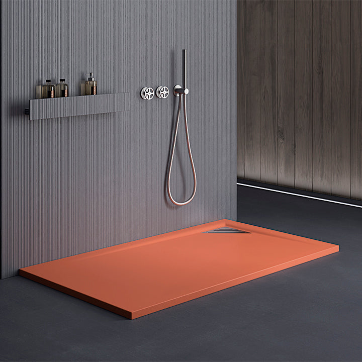 Los platos de ducha MINE están fabricados en resina coloreada en masa, garantizando una uniformidad total con la carta de colores disponible. Se presentan en textura lisa y con la posibilidad de elegir el desagüe a la izquierda o a la derecha, adaptándose a tu espacio.