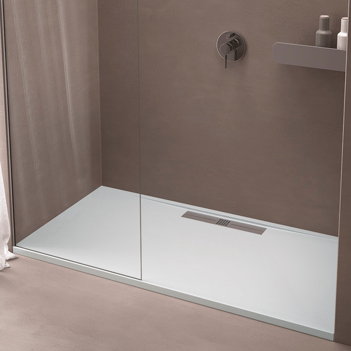 Su diseño exclusivo con desagüe lateral permite instalar la grifería en la zona central de la ducha, aprovechando al máximo el espacio disponible. Además, el perímetro plano facilita la correcta colocación de la mampara, asegurando un ajuste perfecto y un acabado impecable.