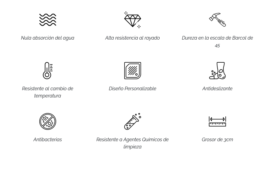 Fabricado en carga mineral con resinas de alta calidad para una mayor durabilidad.
