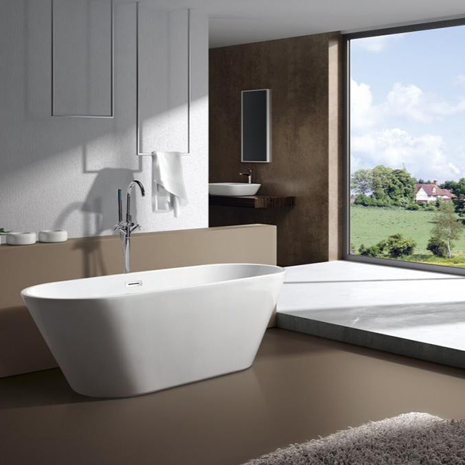 La bañera exenta TASMANIA de Aquore es la opción perfecta para quienes buscan un baño moderno, elegante y funcional. Fabricada en acrílico blanco de alta calidad, ofrece una estética atemporal y una superficie cálida y agradable al tacto, ideal para disfrutar de un momento de relax en casa.